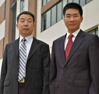 Lu Xingbao, Gründer und Vorstandsvorsitzender der Jiebao Gruppe, zusammen mit seinem Sohn Lu Zhaoming.